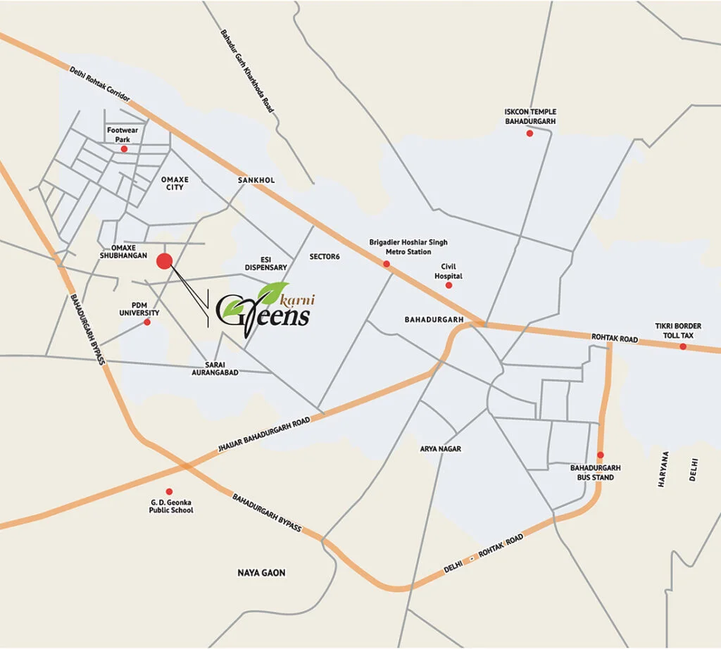 Karni Greens, 60 Meter Sector Road, Sector – 4A, Bahadurgarh, District Jhajjar, Haryana 124507