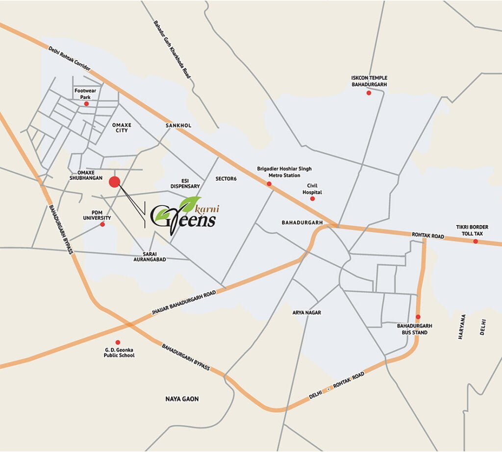Karni Greens, 60 Meter Sector Road, Sector – 4A, Bahadurgarh, District Jhajjar, Haryana 124507